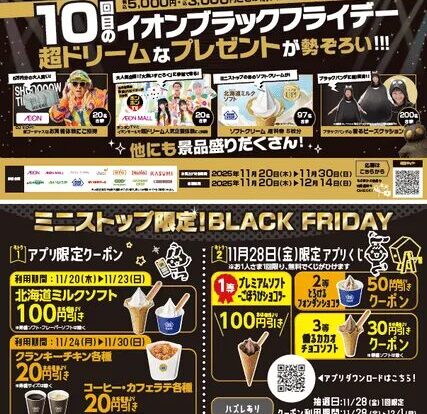 高額商品券や人気企画の体験招待など、豪華なプレゼントが予定されています。日用品の購入やまとめ買いを検討されている方は、ぜひこの機会にミニストップやイオングループ店舗をご利用ください。詳細は11月20日(木)に公開される特設WEBサイトにてご確認ください。